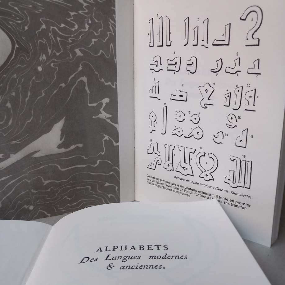 Compilation de recherches historiques sur les écritures et alphabets des grandes familles de langues classiques (du hiéroglyphes aux sinogrammes, en passant par le cunéiforme, phénicien, arabe, cyrillique, etc) 98 pages, 15,5 x 21 cm